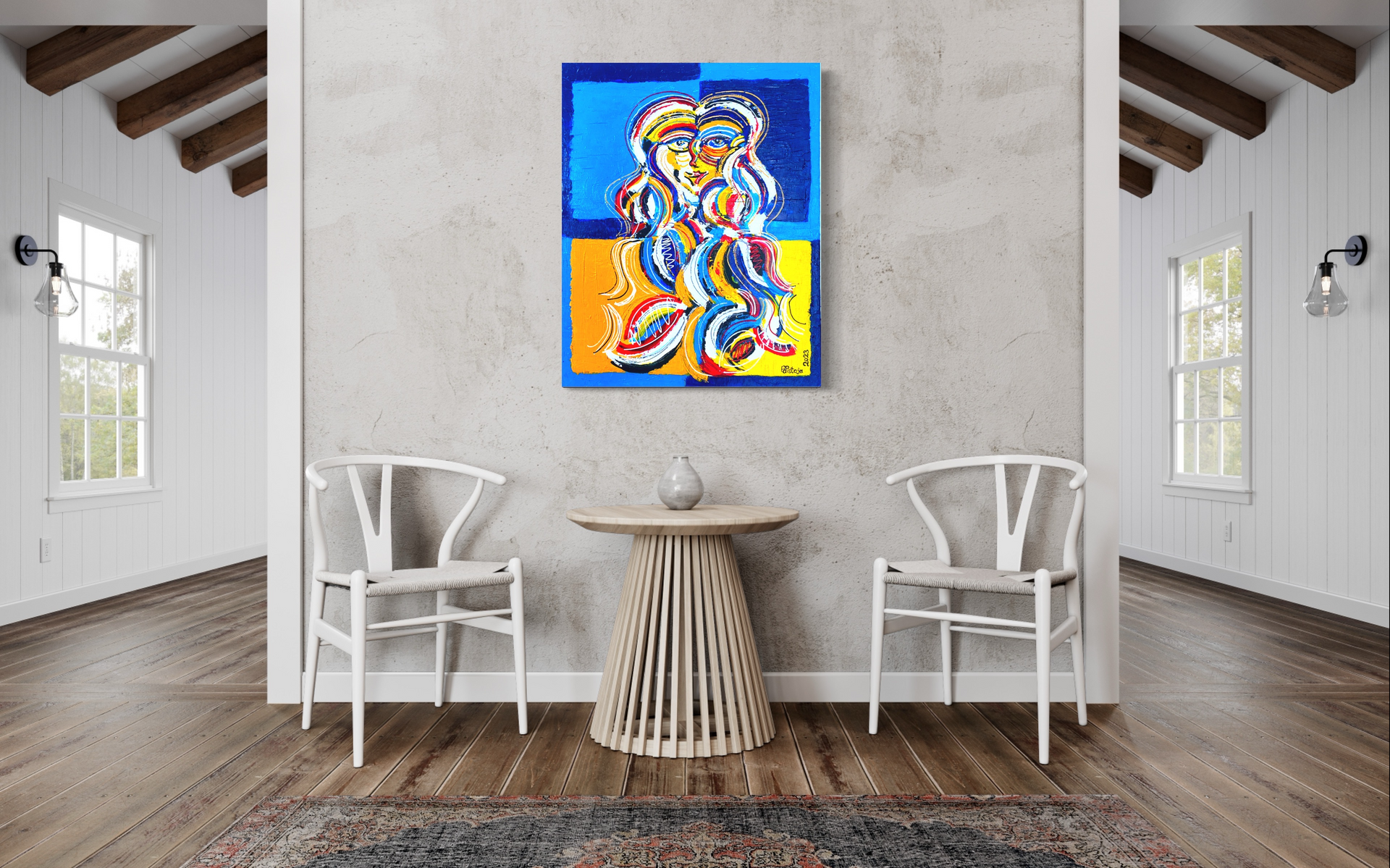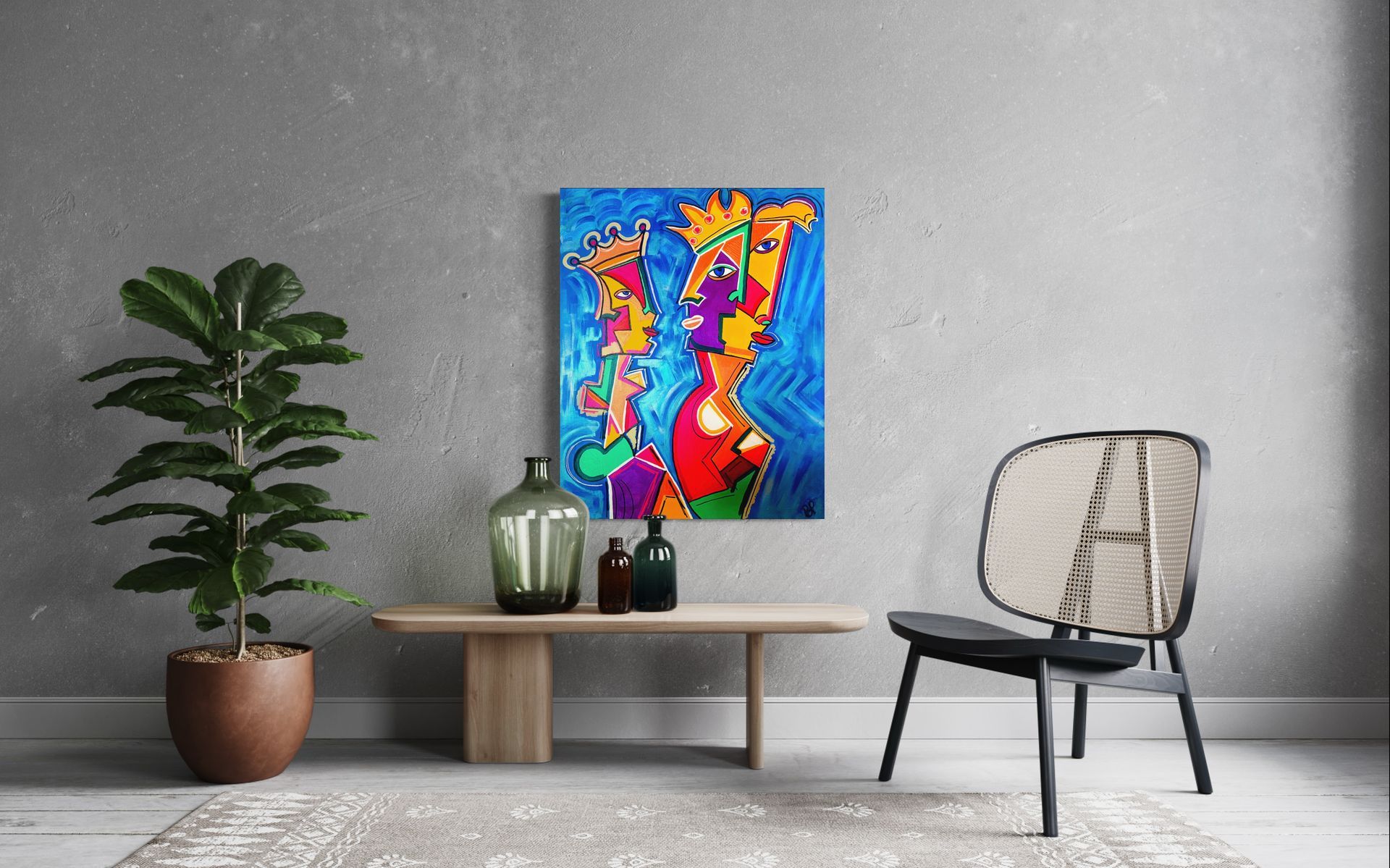 Die leuchtenden Farben und kraftvollen Linien stehen für die Vielfalt des Lebens. Blau, Rot und Gold verschmelzen zu einem ausdrucksstarken Spiel aus Form und Emotion. Die Krone symbolisiert innere Stärke und Selbstbewusstsein – eine Erinnerung daran, dass Transformation ein kraftvoller Prozess sein kann.